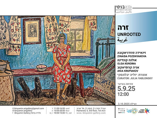 יוליה יבלונסקי: ״התערוכה ׳זרה׳ היא גם סיפור על החמצה, חוסר מימוש והמחיר של גדיעת שורשים וניסיון לנטוע אותם מחדש. עבורי, ברגע הקשה הזה, זאת תזכורת שצריך לעשות הכול כדי שלא נצטרך להיות דור נוסף להגירה וזרות״